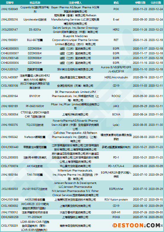 從7月10日至2020年底,在不到6個(gè)月的時(shí)間內(nèi),共有23款創(chuàng)新藥被CDE授予突破性治療藥物認(rèn)定。這些藥物類型廣泛,有CAR-T療法、ADC、雙抗、ASO(反義單鏈寡核苷酸),小分子藥物靶點(diǎn)包括RET、EGFR、JAK、ROCK2、PI3Kδ等。這些創(chuàng)新藥的研發(fā)企業(yè)既有跨國(guó)藥企如輝瑞、諾華、武田等,也有本土藥企如恒瑞醫(yī)藥、康方生物、科技生物等。