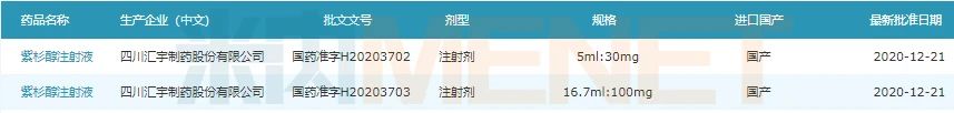 2020年,四川匯宇制藥在抗腫瘤藥領域也有新品獲批,紫杉醇注射液按4類仿制獲批并視同過評。截至目前,該公司按新分類申報并在審的抗腫瘤和免疫調節(jié)劑還有普樂沙福注射液、鹽酸伊立替康注射液、注射用阿扎胞苷、注射用硼替佐米、注射用替莫唑胺以及注射用鹽酸苯達莫司汀。