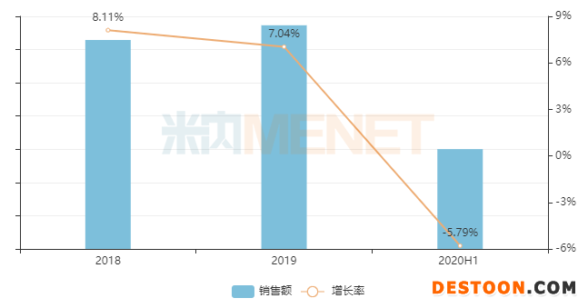 奧沙利鉑是第三代鉑類抗腫瘤藥物,主要用于轉移性結直腸癌的一線治療以及原發(fā)腫瘤完全切除后的III期結腸癌的輔助治療。目前國內市場上主要涉及的產品有注射用奧沙利鉑、奧沙利鉑甘露醇注射液、奧沙利鉑注射液,米內網數(shù)據(jù)顯示,2019年在中國城市公立醫(yī)院、縣級公立醫(yī)院、城市社區(qū)中心及鄉(xiāng)鎮(zhèn)衛(wèi)生院(簡稱中國公立醫(yī)療機構)終端該品種的銷售額超過30億元,2020上半年受疫情影響增速下滑。