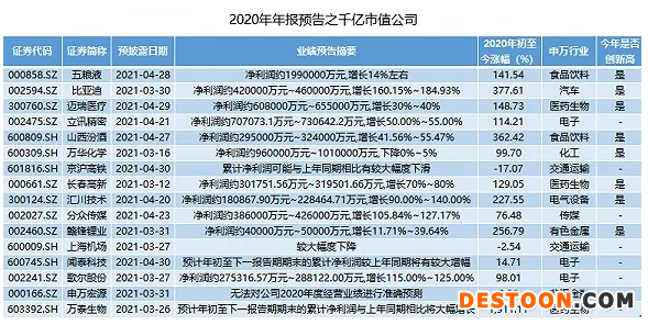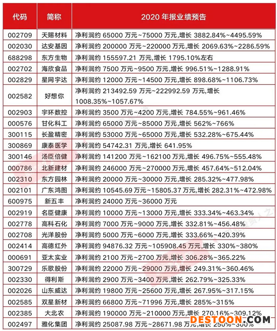 部分預(yù)計2020年業(yè)績大幅增長的公司一覽