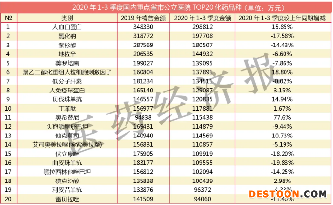 重點(diǎn)公立醫(yī)院TOP20化藥