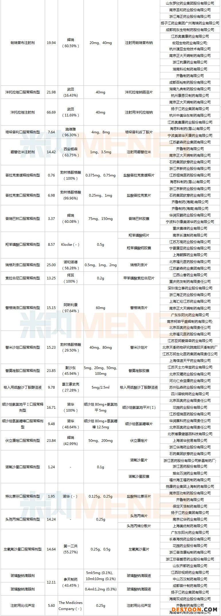 在國(guó)內(nèi)企業(yè)中,一直以來(lái)積極響應(yīng)國(guó)家?guī)Я坎少?gòu)工作的主流企業(yè)仍然品種不少,齊魯制藥、石藥集團(tuán)、正大天晴、豪森藥業(yè)、東陽(yáng)光、科倫藥業(yè)、揚(yáng)子江等企業(yè)品種上榜。