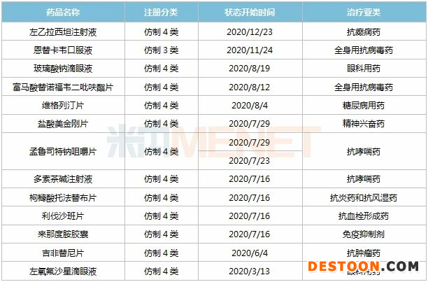 表3:2020年揚(yáng)子江申報(bào)上市的仿制藥