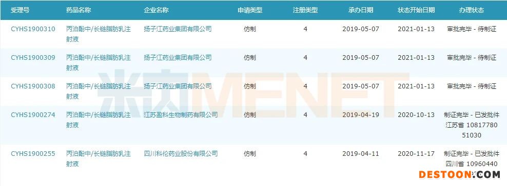 圖2:目前已過評(píng)的丙泊酚中/長(zhǎng)鏈脂肪乳注射液