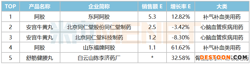 表4:2020E上海TOP5中成藥品牌(單位:億元)