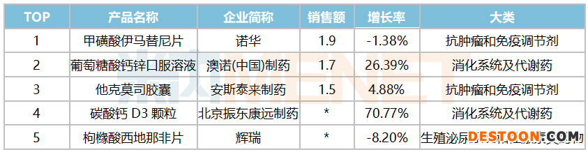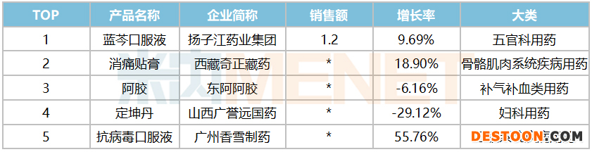 上海:化藥TOP5無國產,揚子江藍芩沖上1.4億