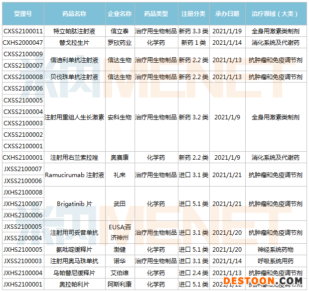 注:數(shù)據(jù)統(tǒng)計時間段為1月9日-1月22日,按藥品名稱統(tǒng)計(不含預(yù)防用生物制品、體外診斷試劑等,不含補充申請),如有疏漏,歡迎指正!