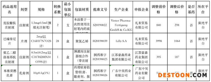 據(jù)了解,禮來(lái)的度拉糖肽注射液、巴瑞替尼片,豪森的聚乙二醇洛塞那肽注射液等產(chǎn)品通過(guò)了2020年談判,進(jìn)入醫(yī)保目錄,新支付價(jià)預(yù)計(jì)于今年3月份正式執(zhí)行,雖然談判價(jià)格尚未公布,但可以通過(guò)這次價(jià)格調(diào)整對(duì)最終結(jié)果做出預(yù)判。