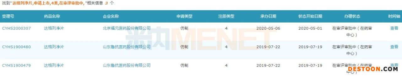 在此之前,山東魯抗醫(yī)藥和北京福元醫(yī)藥以仿制4類提交的上市申請?jiān)趯徳u審批中(在藥審中心)。從承辦日期來看,山東魯抗醫(yī)藥的時間最早。