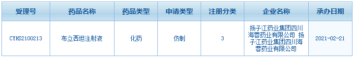 圖1:揚(yáng)子江申報(bào)的布立西坦注射液注冊(cè)情況