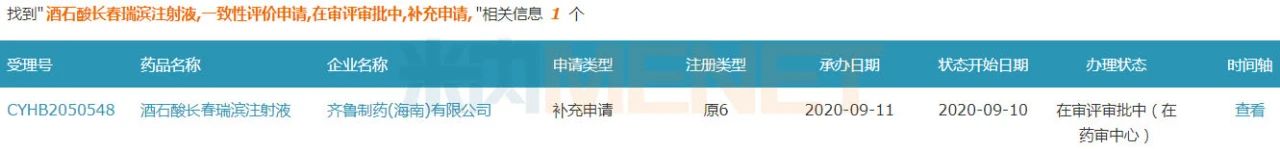 一致性評價方面,目前齊魯制藥(海南)的酒石酸長春瑞濱注射液一致性評價補(bǔ)充申請在審評審批中。
