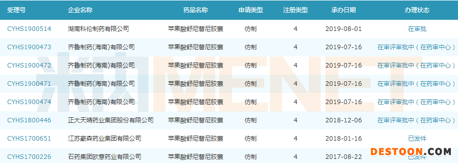 蘋果酸舒尼替尼膠囊仿制4類上市申請(qǐng)情況