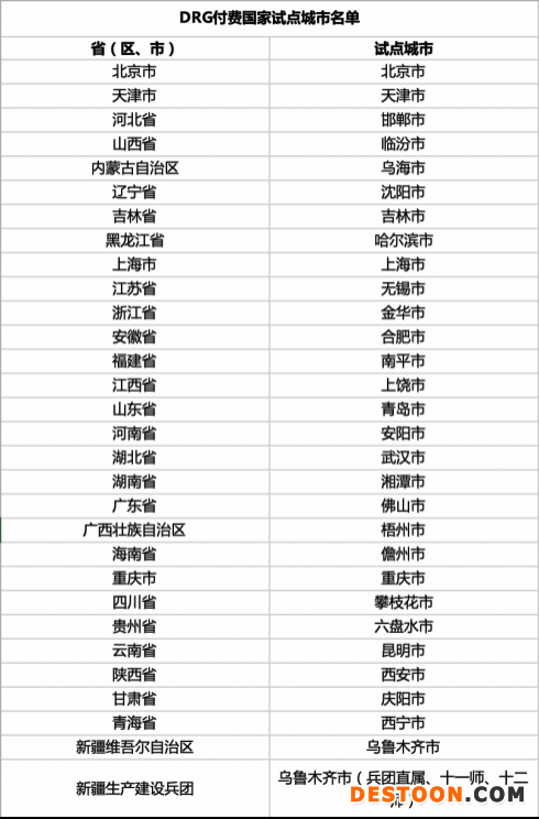 2020年11月4日,國家醫(yī)保局網(wǎng)站公布《國家醫(yī)療保障局辦公室關(guān)于印發(fā)區(qū)域點數(shù)法總額預(yù)算和按病種分值付費試點城市名單的通知》,27個?。ㄖ陛犑校?1個城市納入DIP付費試點,分別為: