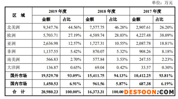 安旭生物招股書顯示,其主營POCT試劑及儀器,涵蓋毒品檢測系列、傳染病檢測系列等8大類,產(chǎn)品銷售以外銷為主,2017-2019年,安旭生物的境外收入分別為1.04億元、1.54億元、1.95億元。