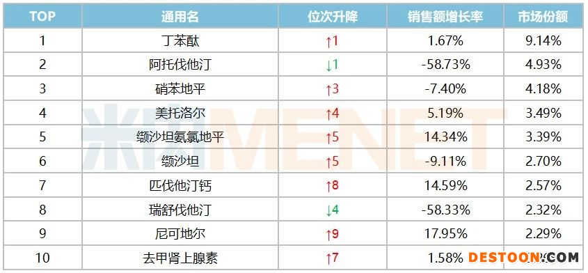 TOP10品種大換血,他汀類表現(xiàn)各不同