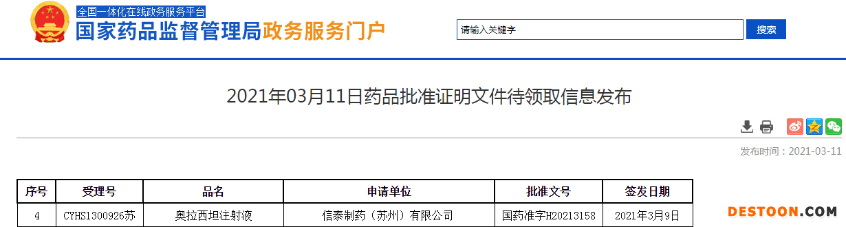 奧拉西坦注射液上市申請?jiān)趯?strong>企業(yè)