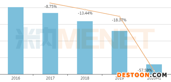 米內(nèi)網(wǎng)數(shù)據(jù)顯示,近年來奧拉西坦注射液在中國城市公立醫(yī)院、縣級公立醫(yī)院、城市社區(qū)中心以及鄉(xiāng)鎮(zhèn)衛(wèi)生院(簡稱中國公立醫(yī)療機(jī)構(gòu))終端銷售額持續(xù)下滑,從2016年的80億元下滑至2019年的51.9億元。