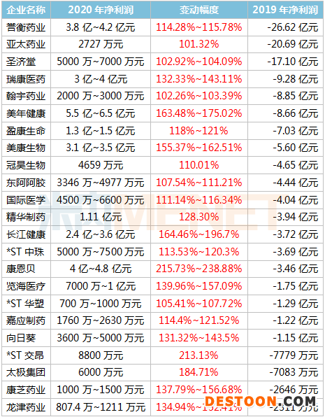 2020年凈利潤扭虧的A股醫(yī)藥企業(yè)