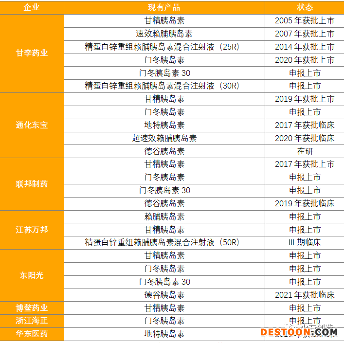 表2:不同類型胰島素對比及代表產(chǎn)品