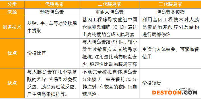 表1: 三代胰島素對比