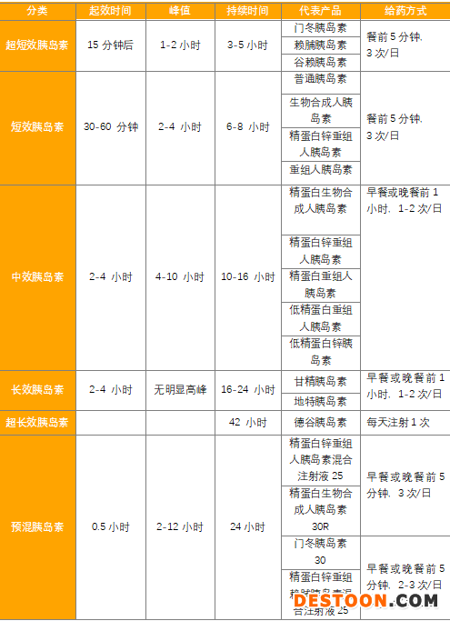 自1921年弗雷德里克·班丁與約翰·麥克勞德合作首次成功提取到了胰島素,今年迎來胰島素的百歲慶典。如今,外源性胰島素已經(jīng)發(fā)展至第三代,分別是動物胰島素、重組人胰島素、胰島素類似物。從作用時間劃分可分為超短效胰島素、短效(速效)胰島素、中效胰島素、長效胰島素、超長效胰島素與預(yù)混胰島素。