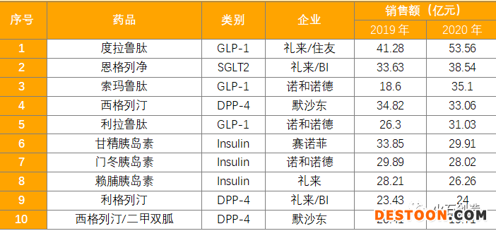 表4:全球降糖藥TOP10