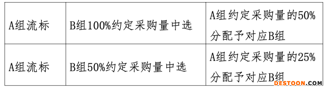 無(wú)論是A組還是B組,都設(shè)置100%和50%兩種約定采購(gòu)量的中標(biāo)規(guī)則。