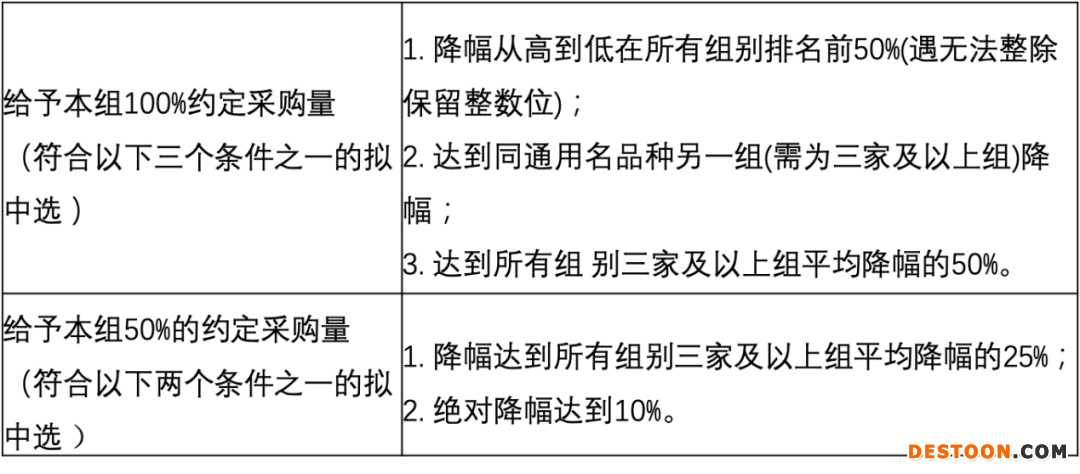 當(dāng)組內(nèi)申報(bào)企業(yè)數(shù)量為2家及以下時(shí),可以獲得的采購(gòu)量分為可獲得100%采購(gòu)量或50%采購(gòu)量。