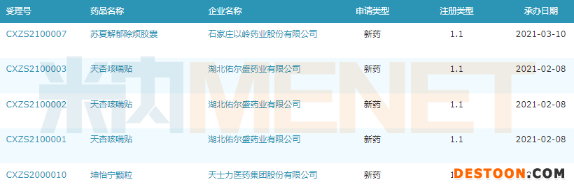 2021至今中成藥1類新藥上市申請(qǐng)情況