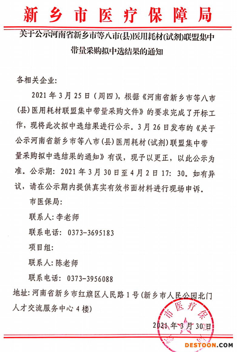近日,根據(jù)新鄉(xiāng)市醫(yī)保局消息,由新鄉(xiāng)市牽頭的河南省八市(縣)開(kāi)展的醫(yī)用耗材聯(lián)盟集中帶量采購(gòu)已正式開(kāi)標(biāo),這是新鄉(xiāng)市首次開(kāi)展的醫(yī)用耗材(試劑)集中帶量采購(gòu)。
