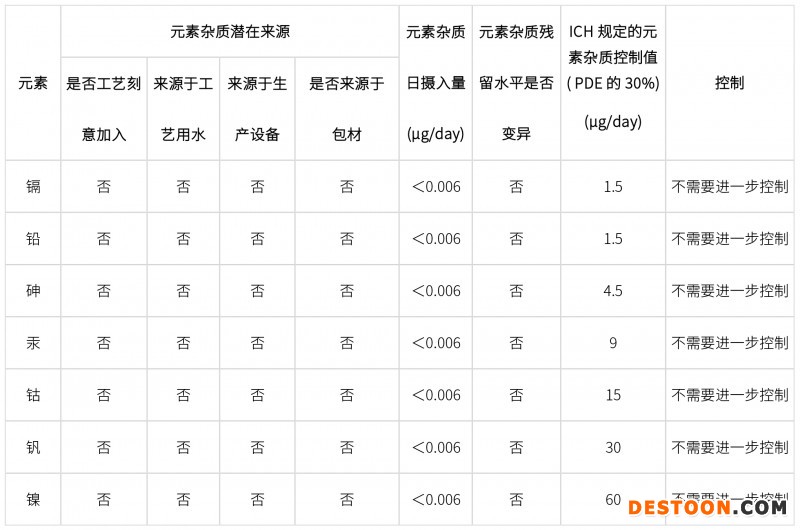 經(jīng)過上述一系列風(fēng)險(xiǎn)評估和相關(guān)檢測數(shù)據(jù),確定原料藥中元素雜質(zhì)最終控制策略: