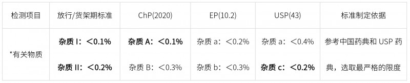 *特定雜質(zhì),藥典雜質(zhì)編號可能不一樣,進(jìn)行對比研究時(shí),要一一對應(yīng)。