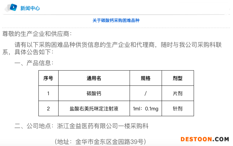 今日(4月19日),金益醫(yī)藥官網(wǎng)發(fā)布一則采購困難品種公告。