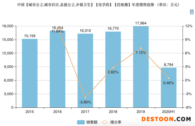米內(nèi)網(wǎng)數(shù)據(jù)顯示,該藥物的市場(chǎng)銷售情況較穩(wěn)定,2019年其國內(nèi)城市公立醫(yī)療終端銷售額為1.79億元,2020年上半年銷售額為8794萬元。