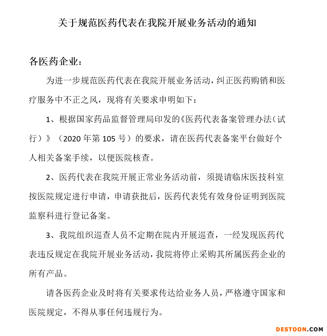 1、醫(yī)院下發(fā)通知,加強代表拜訪管控