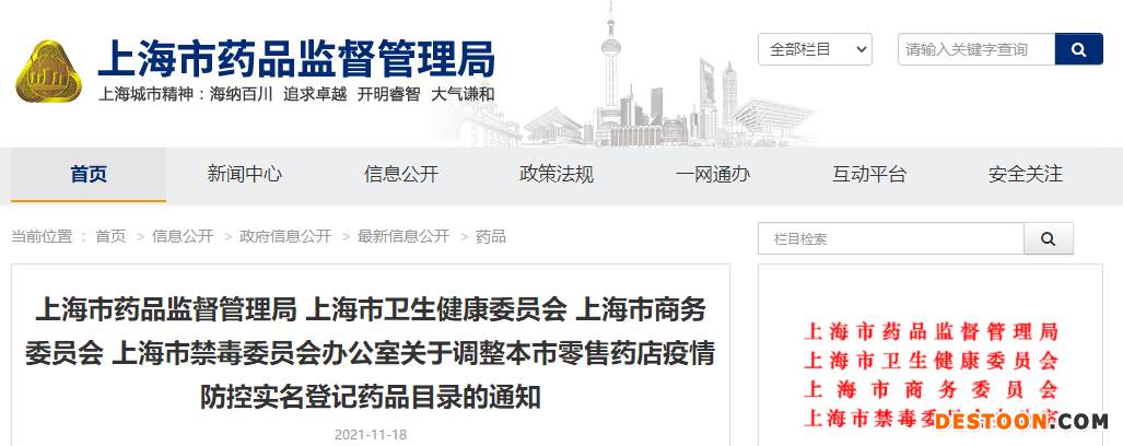 11月18日,上海市藥監(jiān)局、衛(wèi)健委等多個部門聯(lián)合發(fā)布了《關(guān)于調(diào)整本市零售藥店疫情防控實名登記藥品目錄的通知》(以下簡稱《通知》)。