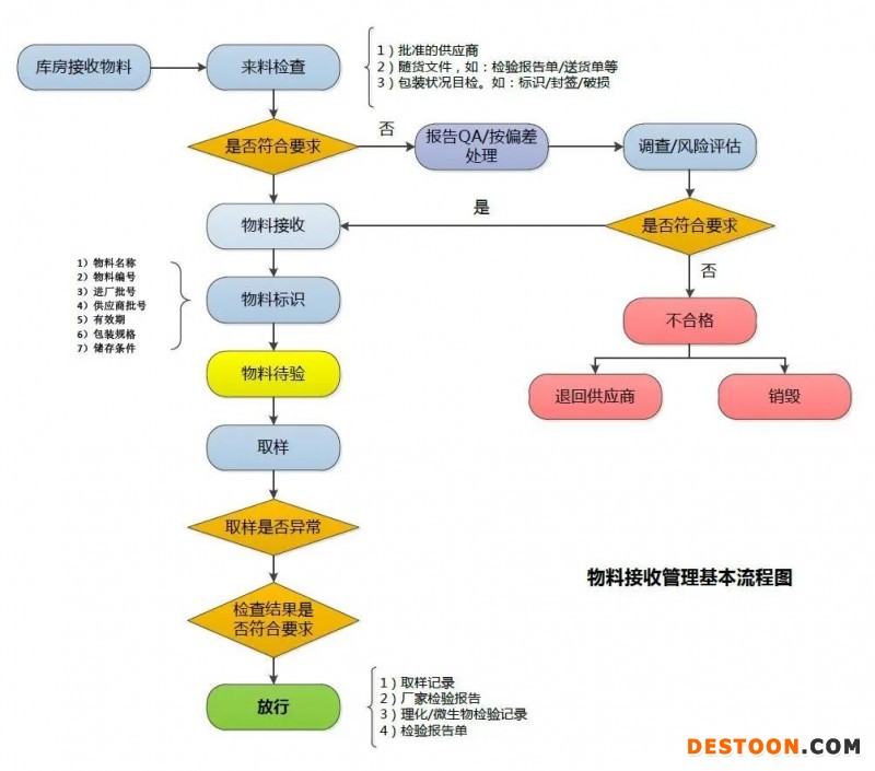 物料接收包括物料從入庫到存放、取樣、檢驗、放行的全過程, 著重說明物料接收的步驟、檢查內(nèi)容和注意事項。