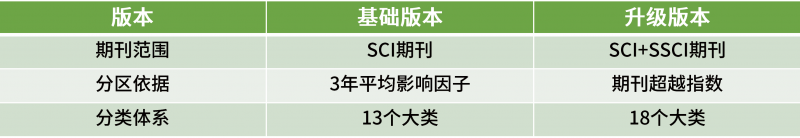 最流行是的中科院的分區(qū)。從2020年,分區(qū)依據(jù)由原來的影響因子換成超越指數(shù),這種分區(qū)方法將經(jīng)歷2019-2021三年的過渡期,由原來的13大類變成了18大類,如下圖所示。