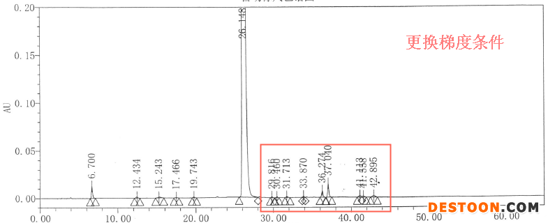 • 延長(zhǎng)梯度洗脫高比例洗脫劑洗脫時(shí)間,防止小極性雜質(zhì)漏檢。