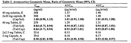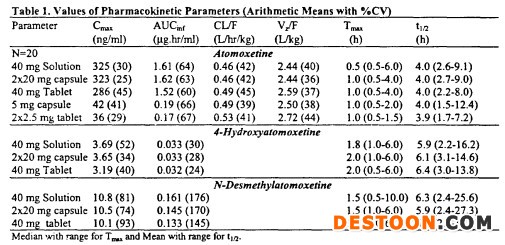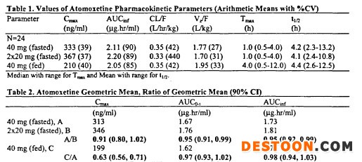 筆者認(rèn)為FDA綜述對(duì)于臨床研究公布的更為詳細(xì),報(bào)告中會(huì)匯總原研開(kāi)發(fā)過(guò)程中所進(jìn)行的各種臨床試驗(yàn),包括不同劑型的藥動(dòng)學(xué)研究;處方變化的生物等效性研究;食物對(duì)于藥物吸收的影響;不同人群吸收的影響等,下面以托莫西汀膠囊為例,解讀相關(guān)文獻(xiàn)。