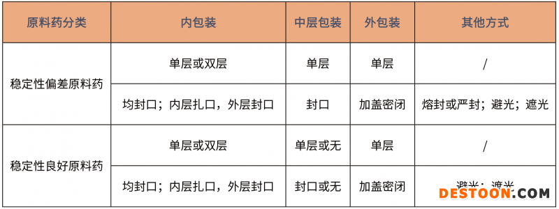 根據(jù)原料藥化學(xué)性質(zhì)穩(wěn)定性情況,包裝方式常規(guī)如下: