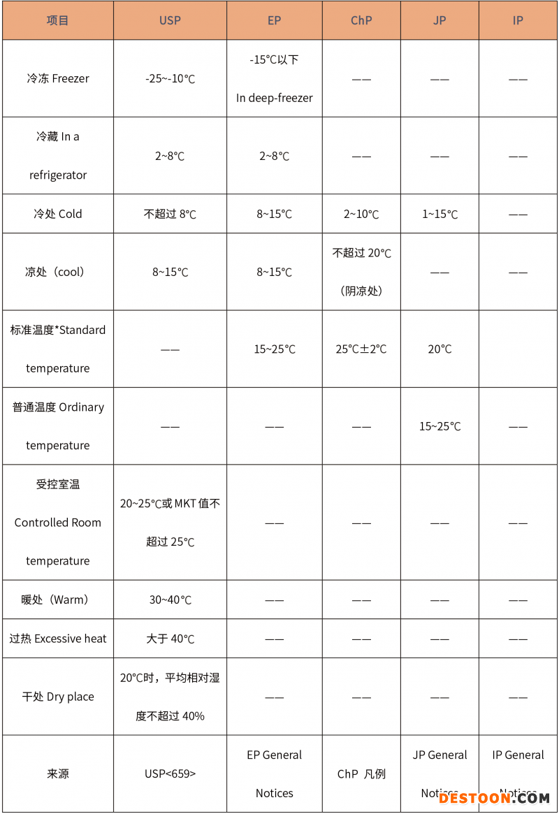 各國(guó)藥典對(duì)于貯藏名詞術(shù)語(yǔ)的解釋?zhuān)?br />