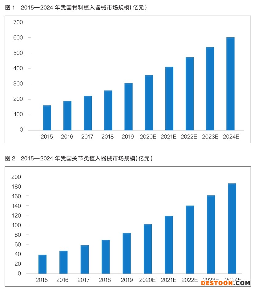 隨著全球經(jīng)濟發(fā)展以及人口老齡化問題不斷加劇,醫(yī)療健康市場的潛力被進一步激發(fā)。醫(yī)療器械市場的發(fā)展與醫(yī)療健康行業(yè)緊密相關(guān)。從細(xì)分領(lǐng)域來看,骨科植入器械市場規(guī)模約占全球醫(yī)療器械市場總規(guī)模的9%,位列第四。基于我國人口基數(shù)龐大,社會老齡化進程加速,骨科醫(yī)療需求不斷上漲,骨科植入器械行業(yè)近年來得到迅速發(fā)展,且仍有廣闊的市場前景和巨大的成長空間。