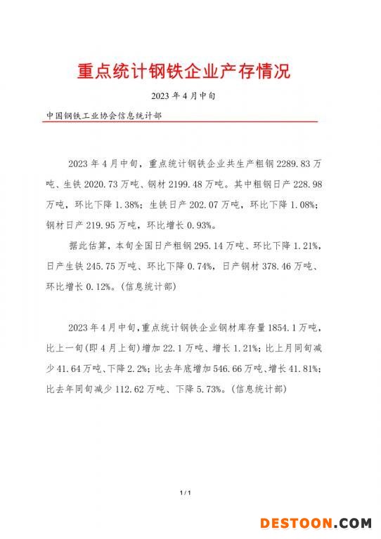 http://china.chemnet.com/ 2023-04-26 10:45:14 中國鋼鐵工業(yè)協(xié)會(huì)信息統(tǒng)計(jì)部